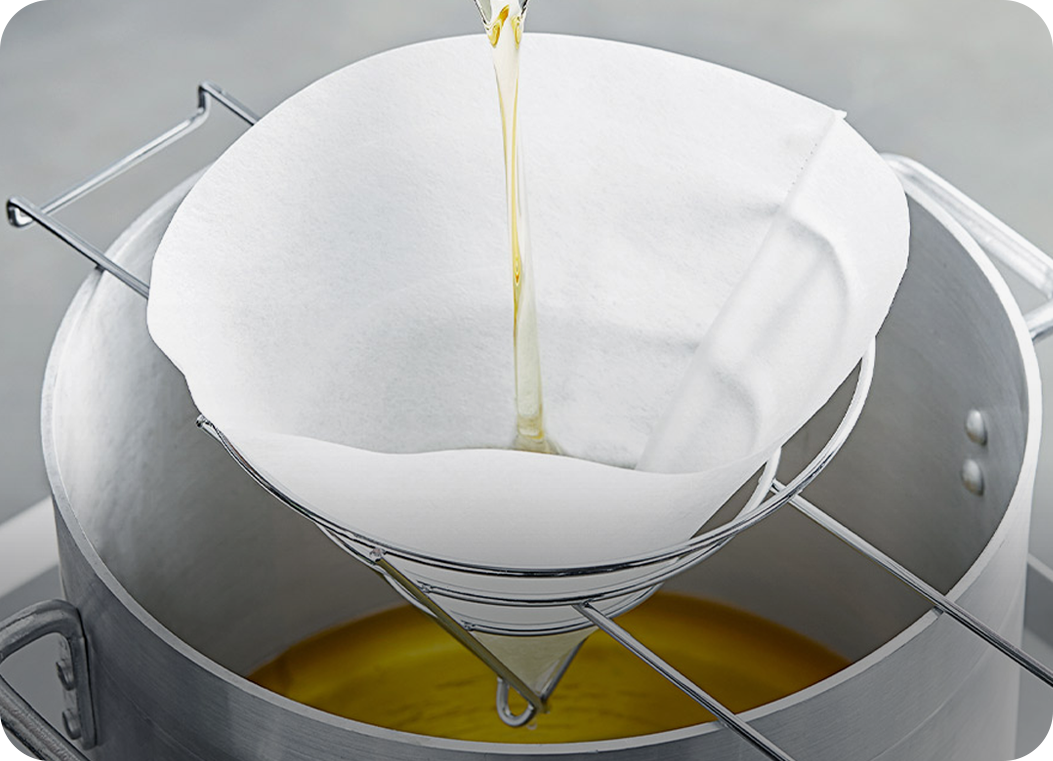 Minyak goreng merupakan biaya operasional yang signifikan untuk katering skala besar. Penggantian oli yang terdegradasi secara sering tidak hanya meningkatkan biaya namun juga menghasilkan limbah lingkungan. Kertas penyaring minyak goreng memungkinkan katering memperpanjang kegunaan minyak dengan menghilangkan partikel makanan, endapan karbon, dan kontaminan lain yang mempercepat penguraian minyak.